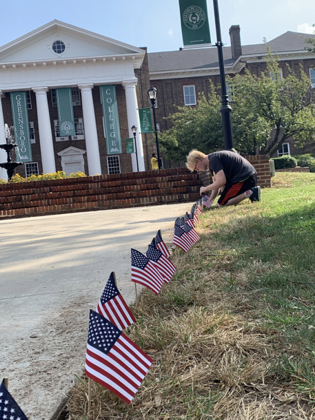 Greensboro College’s Young Americans for Freedom (YAF) chapter held a memorial as part of the nationwide 9/11: Never Forget Project in commemoration of the victims of the terrorist attacks that occurred on Sept. 11, 2001. The event was held at 9:11 a.m. in front of Main Building on Greensboro College’s campus where students and faculty gathered for a moment of silence.