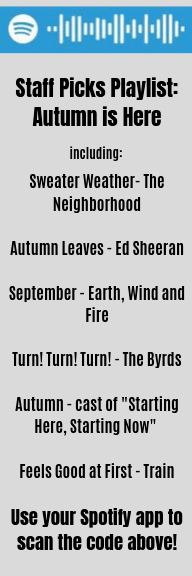 September 30, 2019 TheGCCollegian Staff Picks Playlist—Autumn is Here In Spotify app, go to the searchbar, tap the camera icon then scan the code with your phone. Share this: Share on X (Opens in new window) X Share on Facebook (Opens in new window) Facebook Like Loading... Related