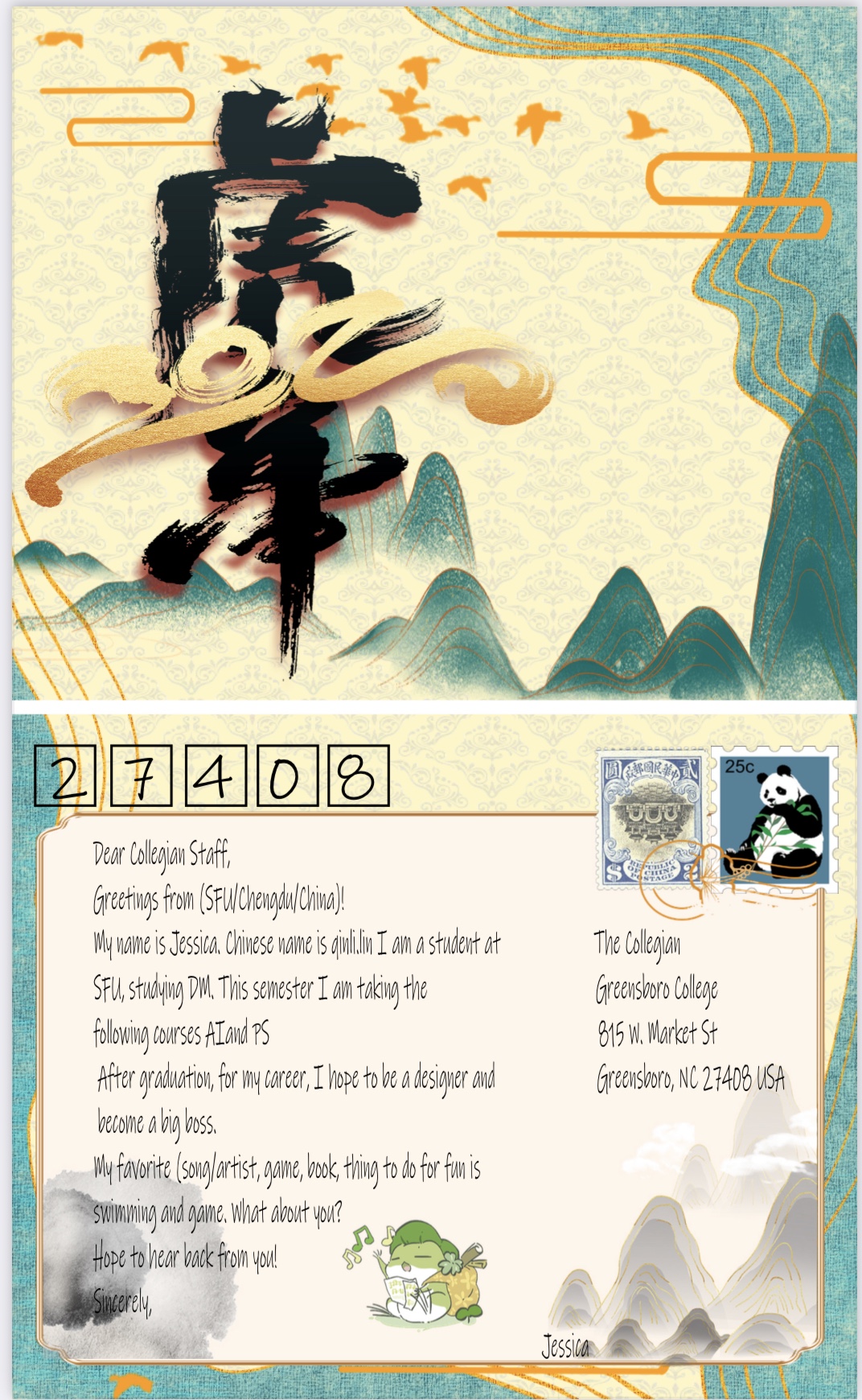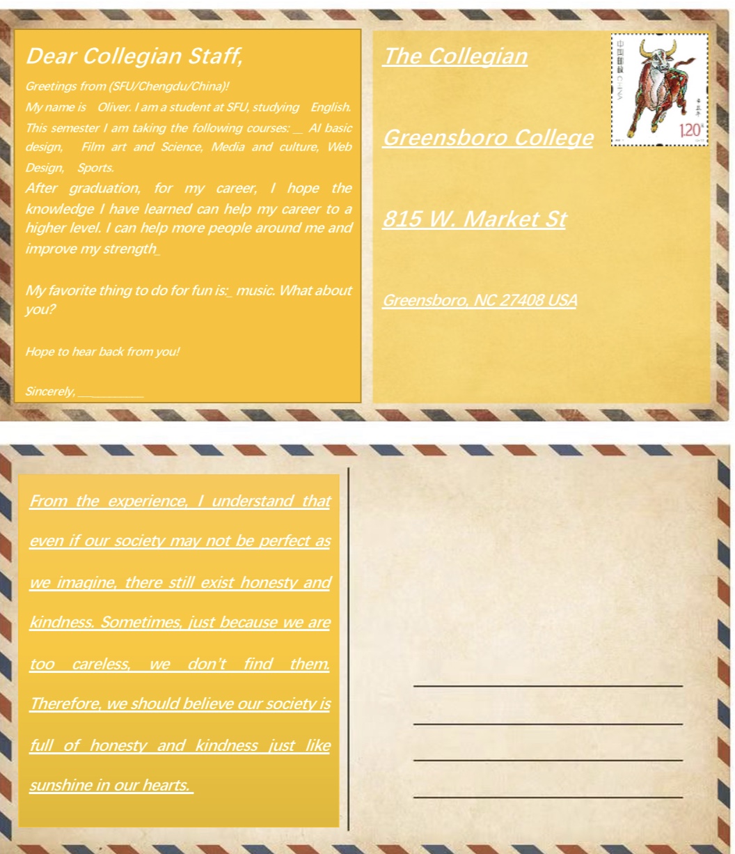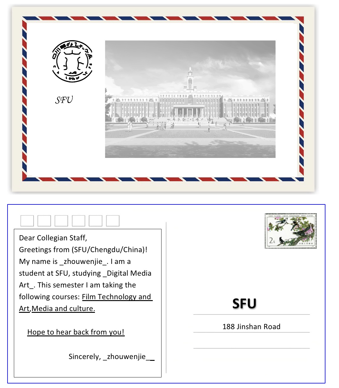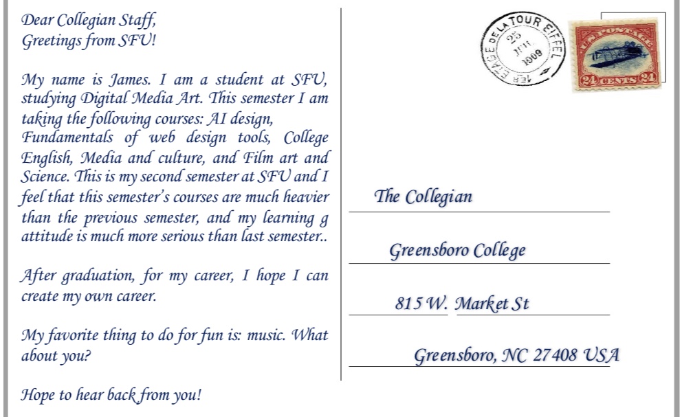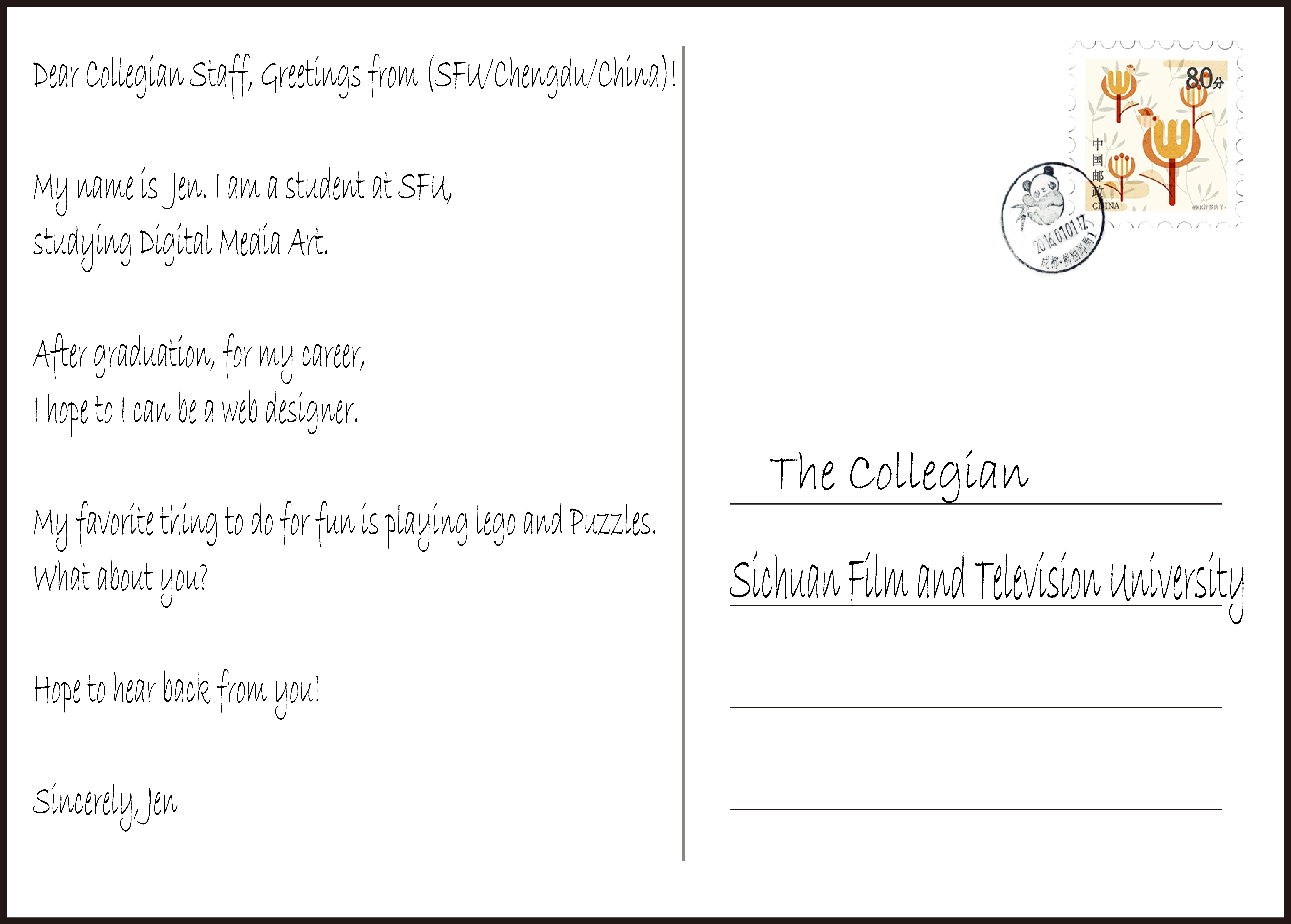 Postcards are arriving from students in the digital media arts program at SFU, GC’s partner college in Chengdu, China.