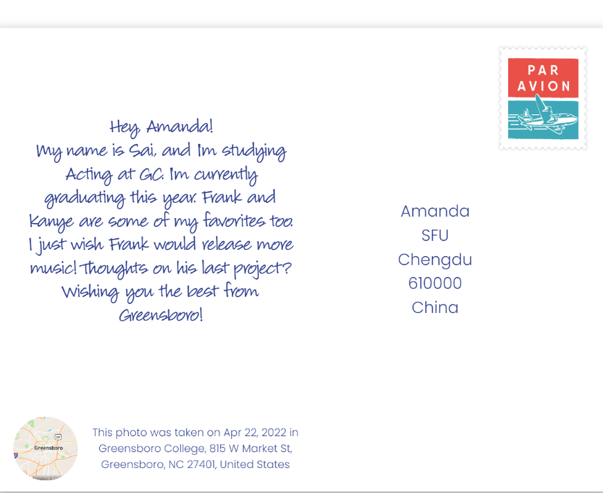 April 22, 2022September 10, 2022 TheGCCollegian GC students send postcards back to China Share this: Click to share on X (Opens in new window) X Click to share on Facebook (Opens in new window) Facebook Like Loading... Related