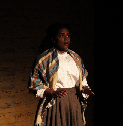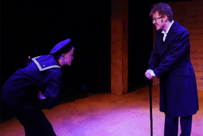 A scene that did not require much involvement of sets or props was The Audition. Powell played Nina; a young woman whose dream is to become an actor. Conway is also playing Chekhov offstage. Although they do not share the stage together, they work well delivering their dialogue to one another and moving the story along. Powell portrays eagerness, nervousness and excitement character’s audition. With the way this scene was set up, both actors did great working with it.