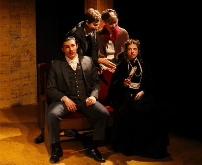 The show was opened with the Narrator talking about his passion for writing and the importance he hopes to have in the world after he passes. Although wanting to give the audience a positive message, he ends up creating a new story idea called The Sneeze. A story about Cherdyakov played by Dibbins going to the theatre with his wife played by Glass. Also attending the show is Cherdyakov’s superior, Brassilhov played by Brown and his wife played by Chester. The story follows Cherdyakov after he sneezes on his superior and the anxiety that weighs on him throughout the run of the scene because of it. He goes on tangents as well to express how he feels as if Brassilhov has played a trick on him, later saying “I must go back and tell him what I think of him. The lower classes must speak up… The work must be made safe so that men of all nations and creeds, regardless of color or religion, will be free to sneeze on their superiors!” This was a wonderful way to start the show as it gave the audience a good idea of what they were about to watch.