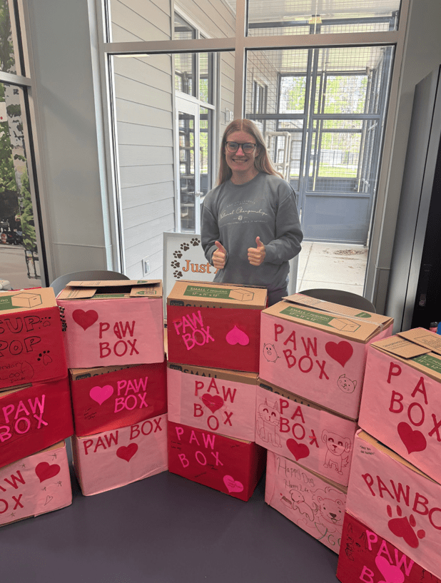 The 15 paw boxes were donated to Guilford Animal Services, which was urgently in need of pet care items. The organization runs an adoption and foster agency, keeping animals safe until they can be homed. Inside these boxes were items such as pet pads, food, pet toys, and blankets – and the boxes were all personally designed by the students. Ensuring Guilford Animal Services has the necessities they need to care for these animals ideally will help lower the amount killed in shelters as approximately 920,000 shelter animals are euthanized each year.